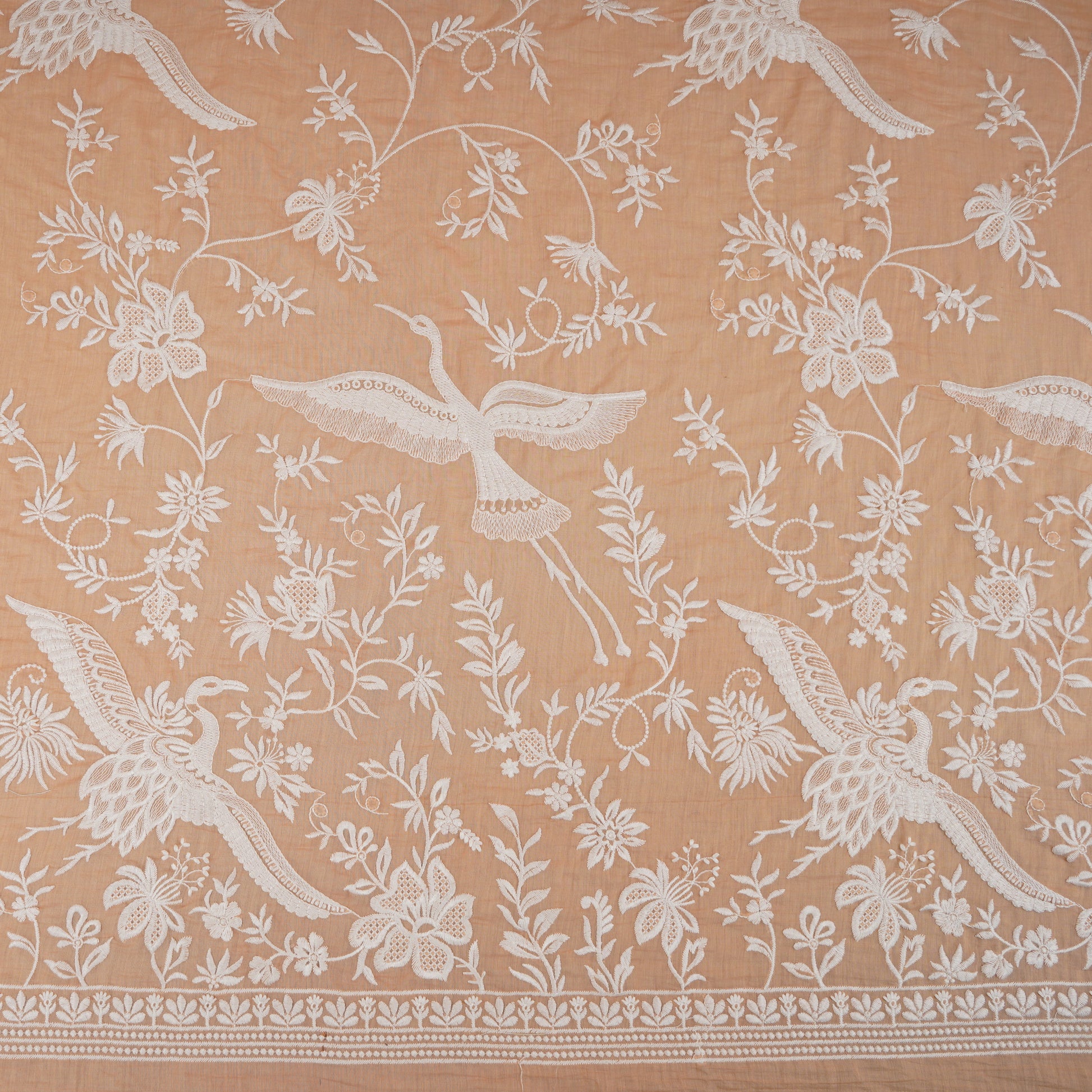 Product Name Peach with White Parsi Gara embroidery Mul Chanderi Fabric DC-29826