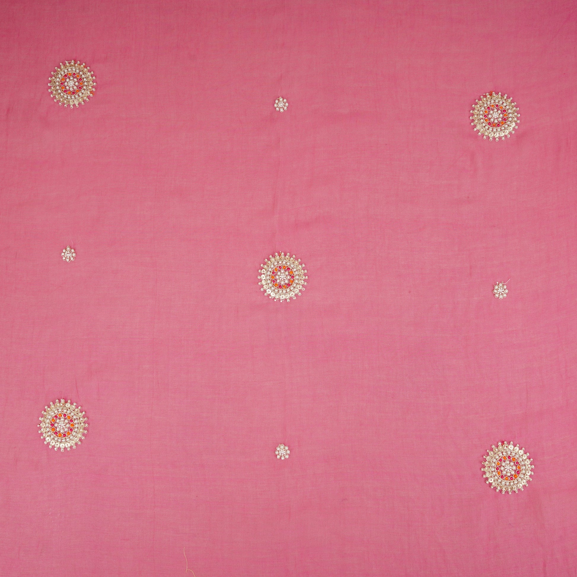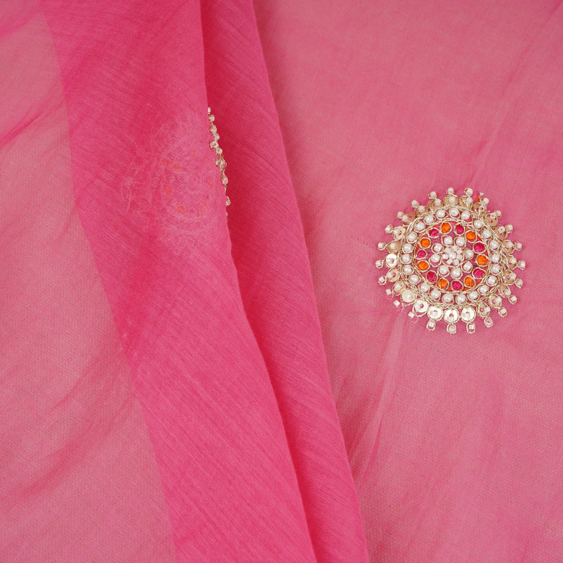 Product Name Pink Floral Cutdana Embroidery Mul Chanderi Fabric SN-30098