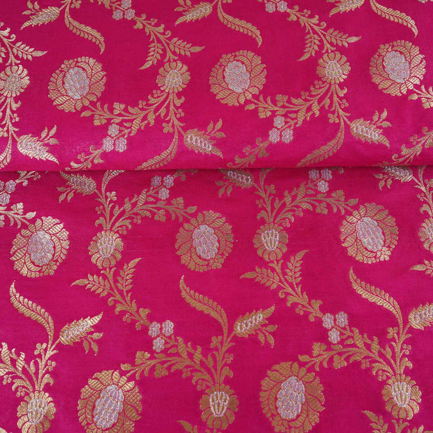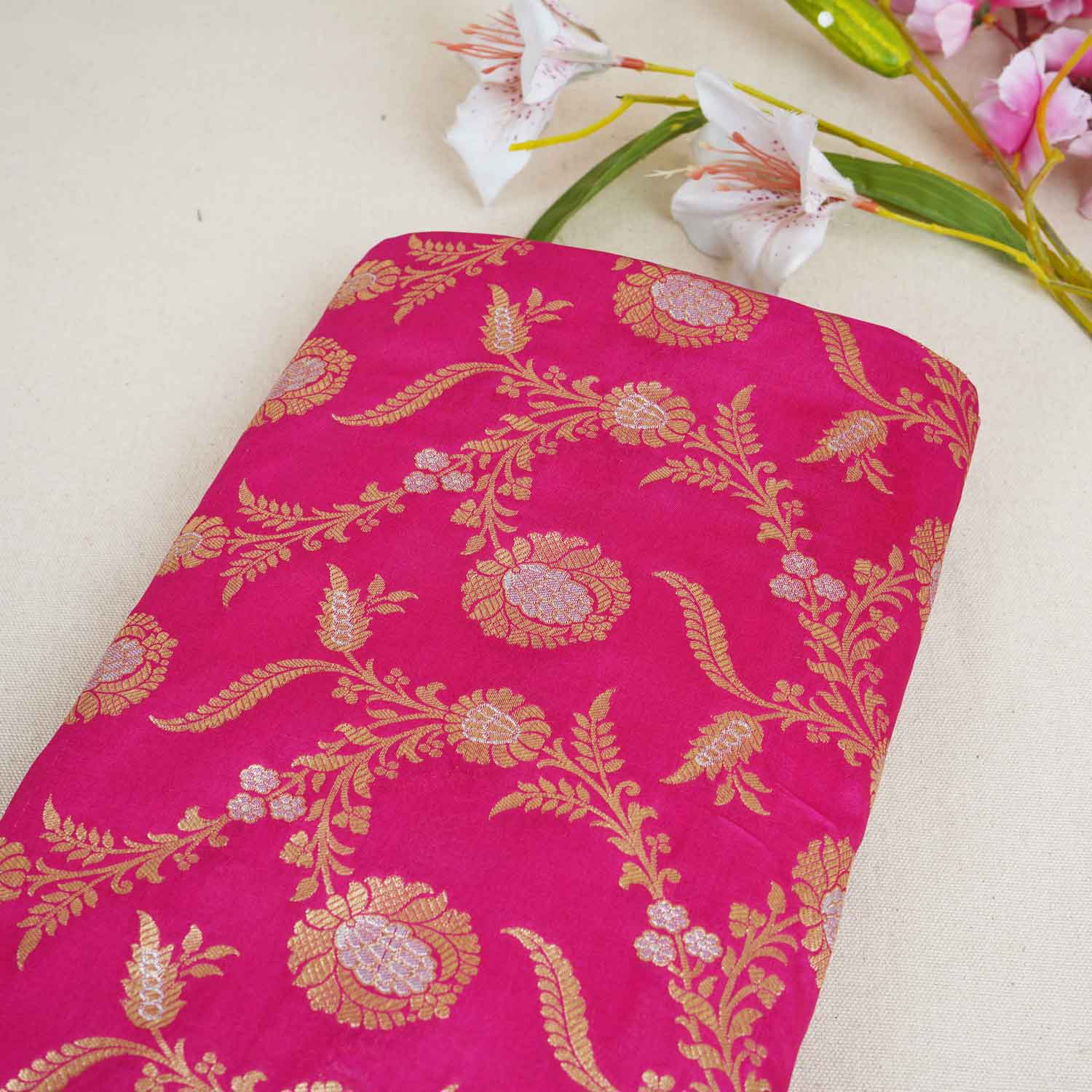 Pink Floral Jaal Katan Silk Fabric NH-28903