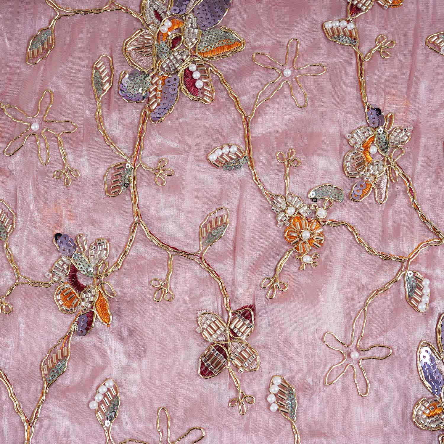 Product Name Pink Floral Zari Embroidery Tissue Organza Fabric AF-28990