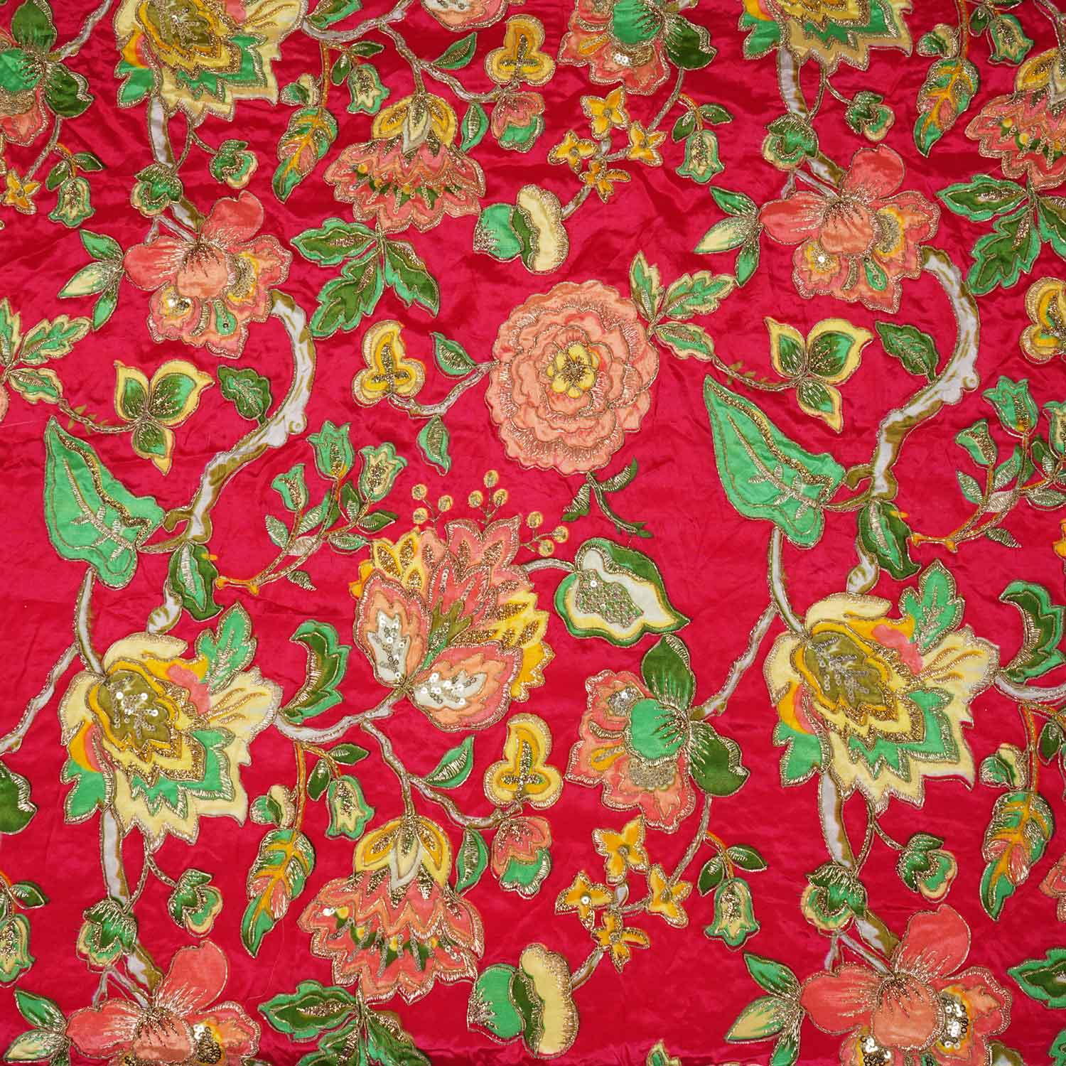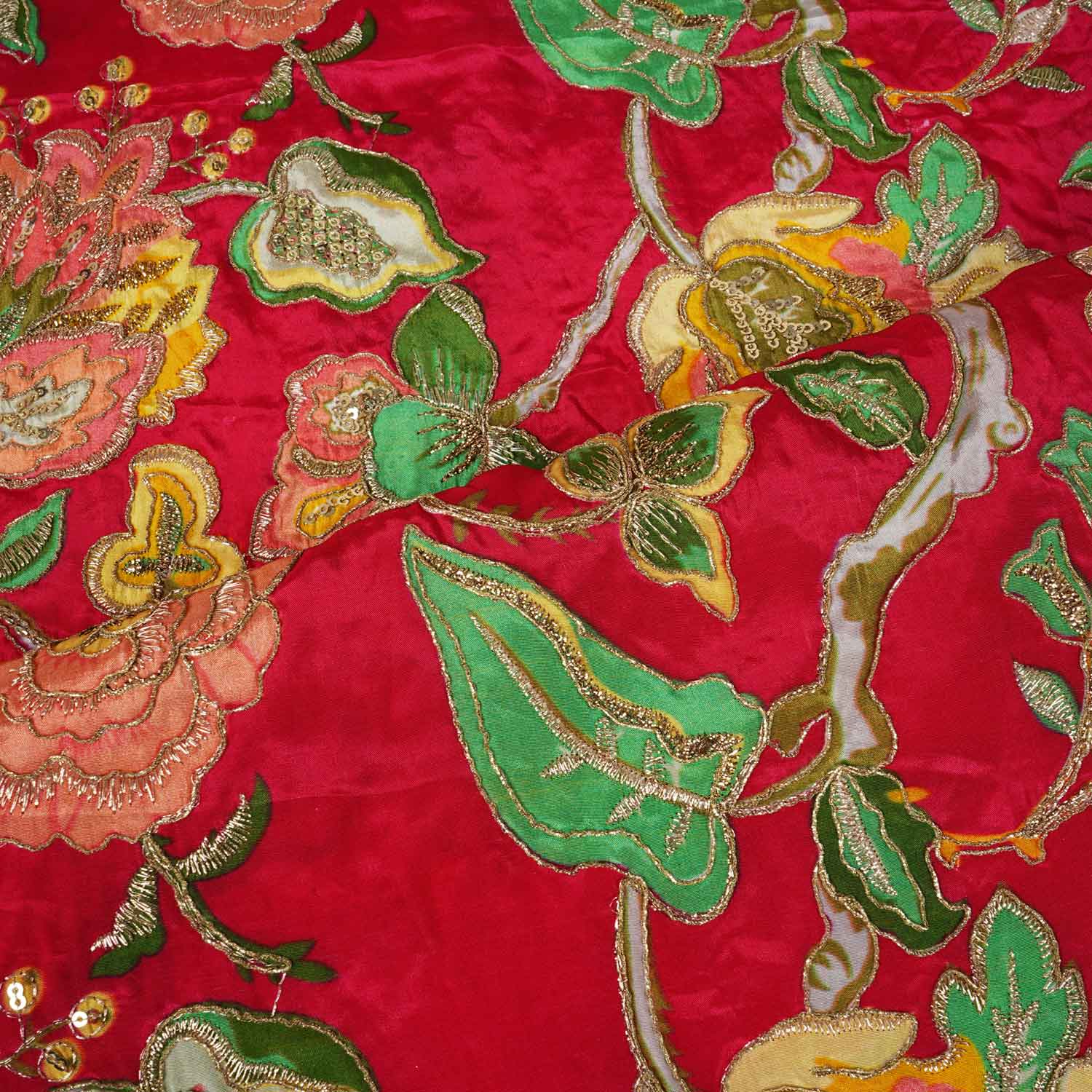 Product Name Pink Position Print Zari Embroidery Crepe Fabric NF-28005