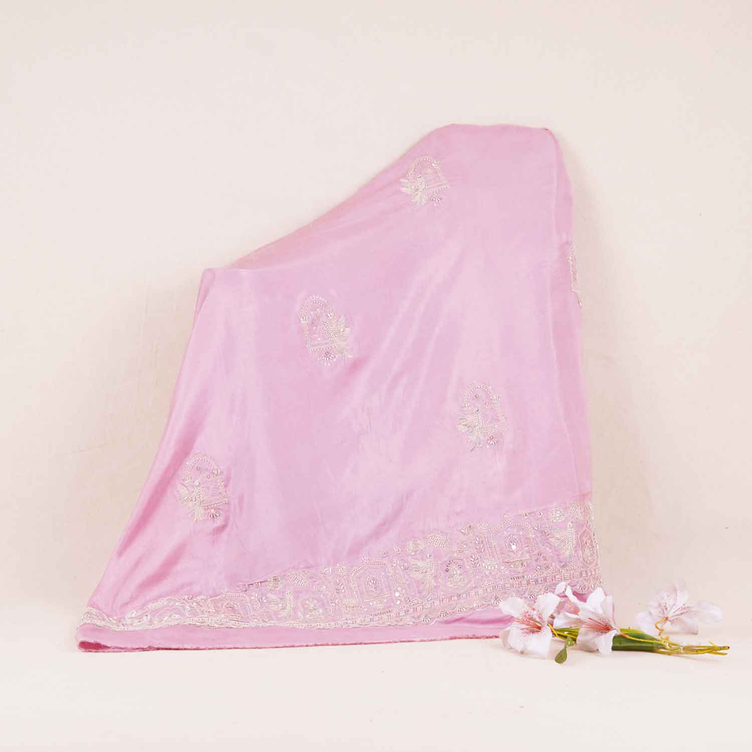 Product Name Pink Traditional Pearl Cutdana Dola Silk Fabric TA-28986