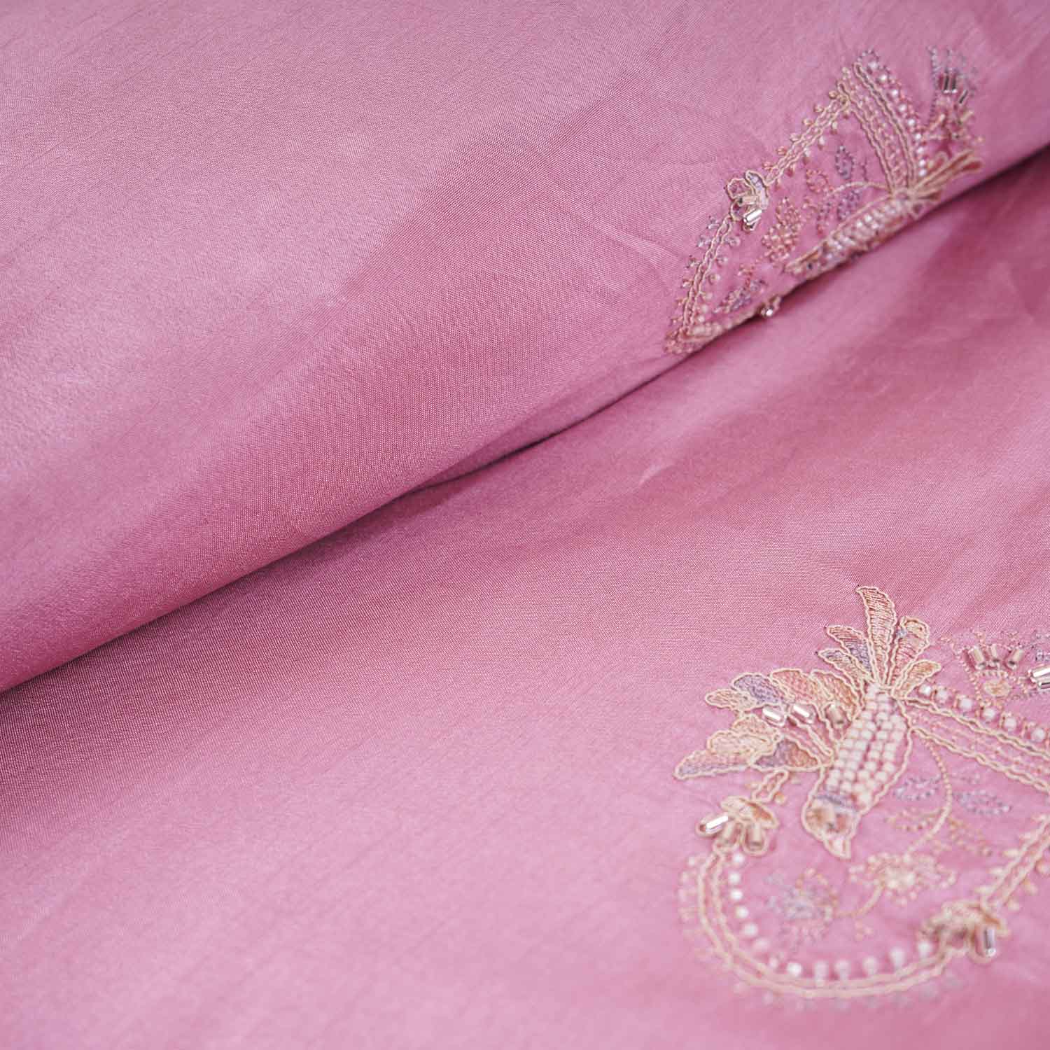 Pink Traditional Pearl Cutdana Dola Silk Fabric TA-28986