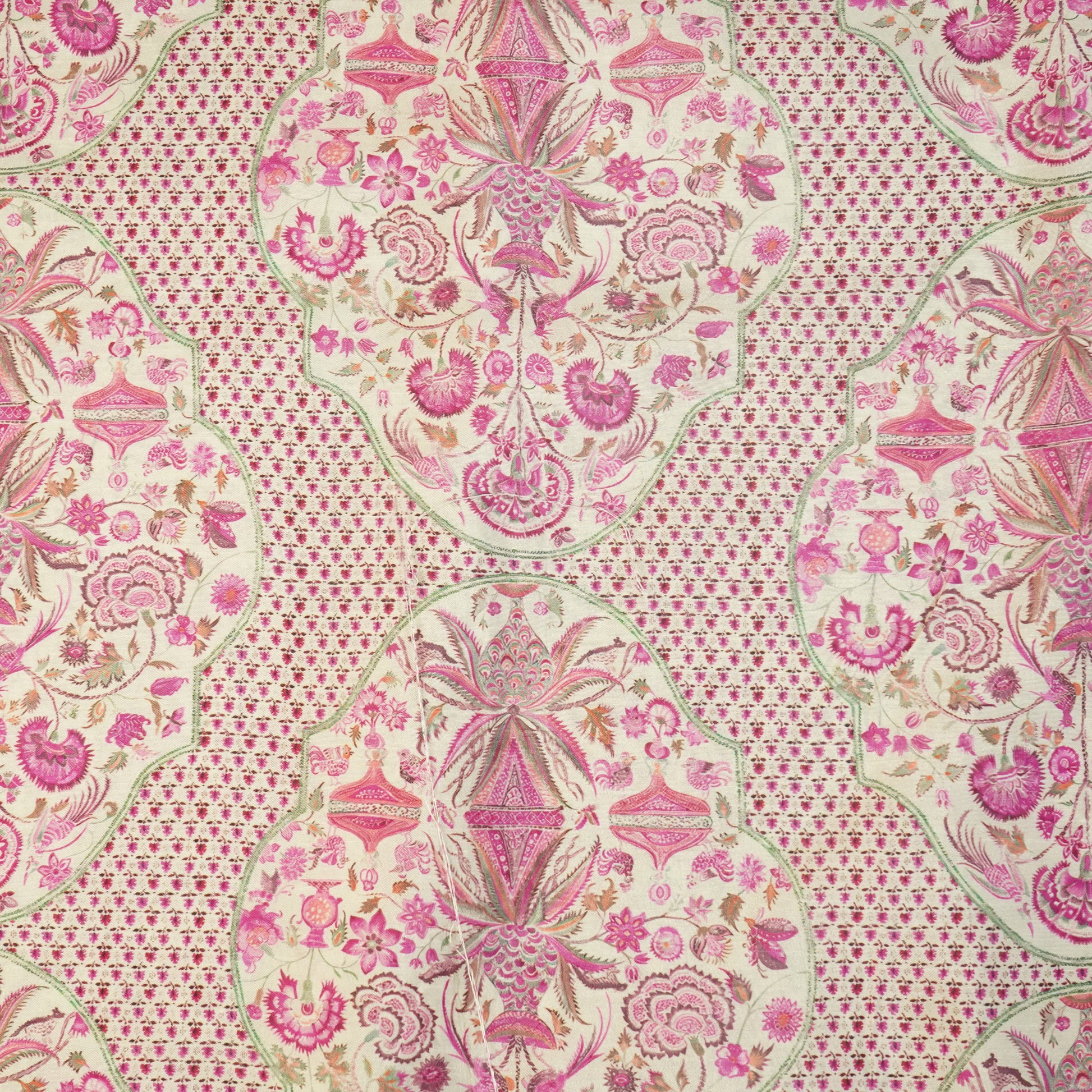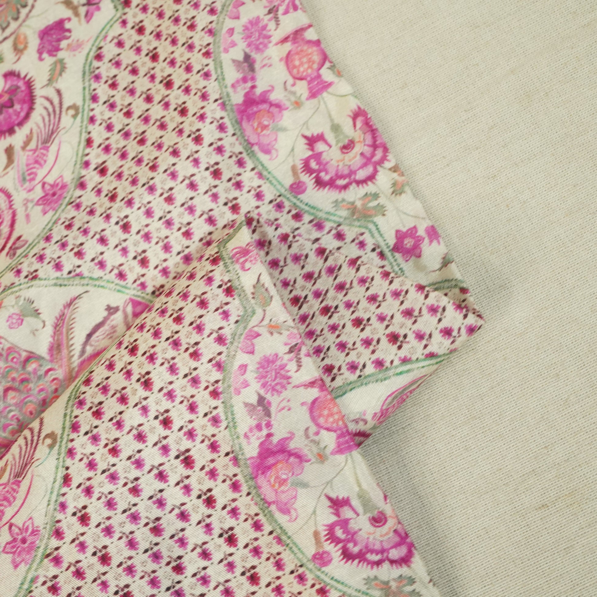 Product Name Pink Traditional Print Raw Silk Fabric-SNTF-26977