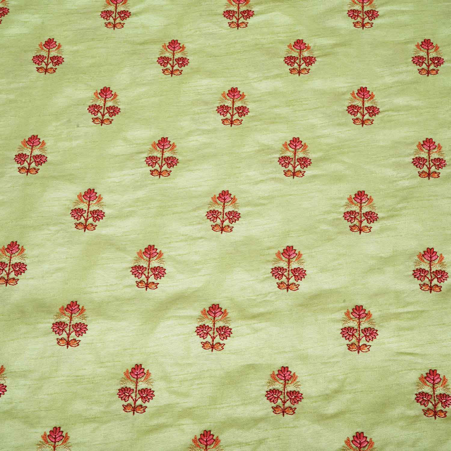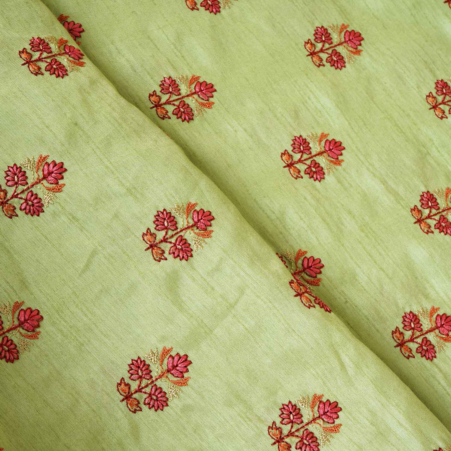Pista Green Kashmiri Embroidery Raw Silk Fabric RA-28210