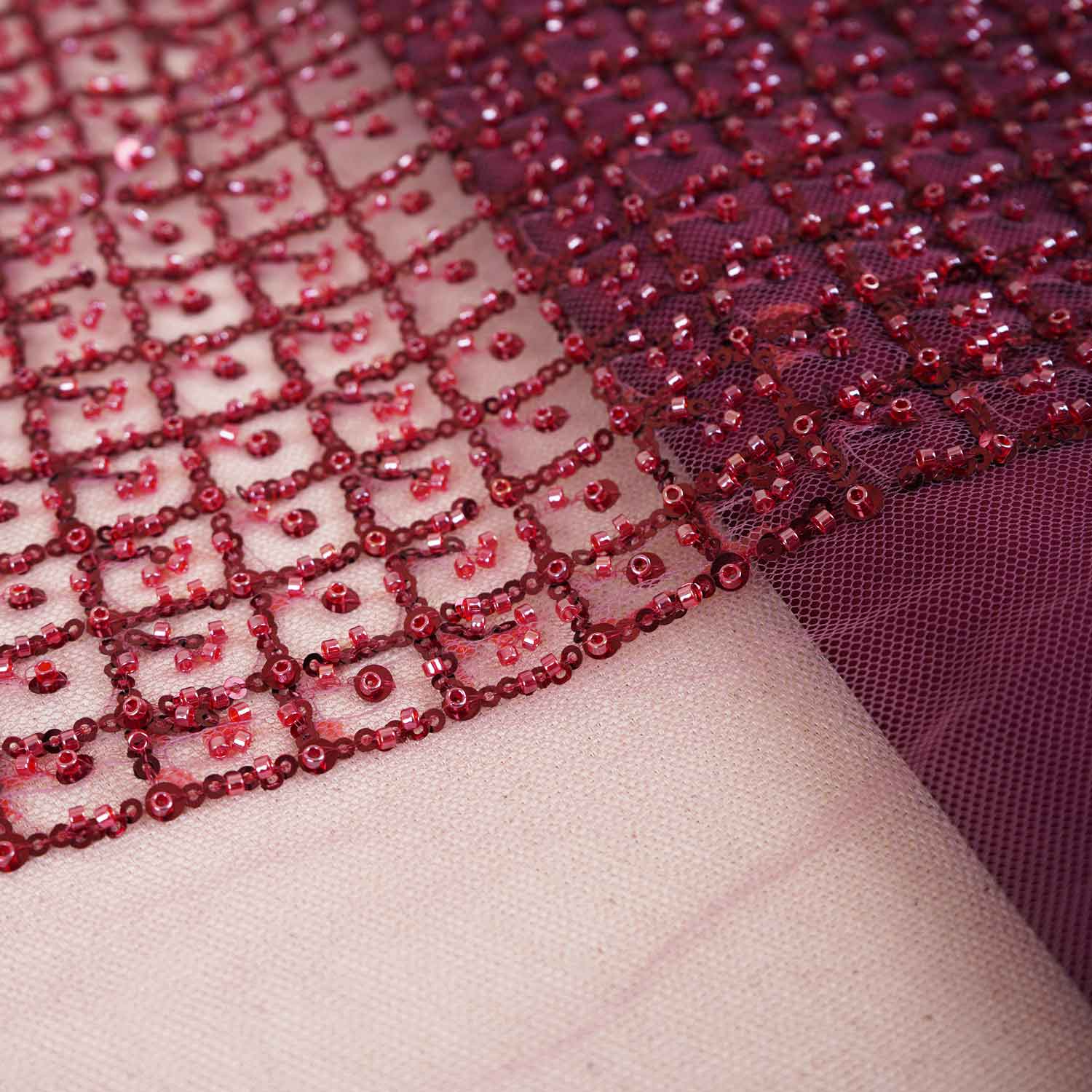 Premium Pomegranate Red Heavy Pearl Sequins CutDana Embroidery Net Fabric