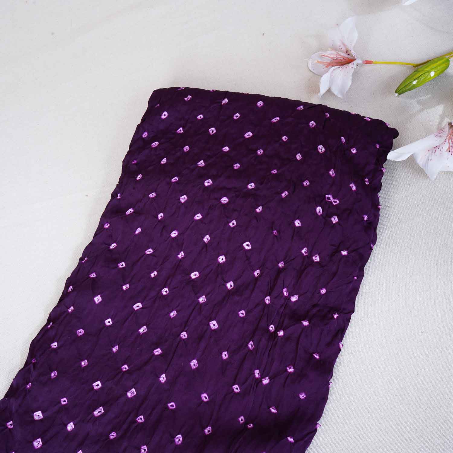 Purple Bandhani Print Modal Silk Fabric SC-28608