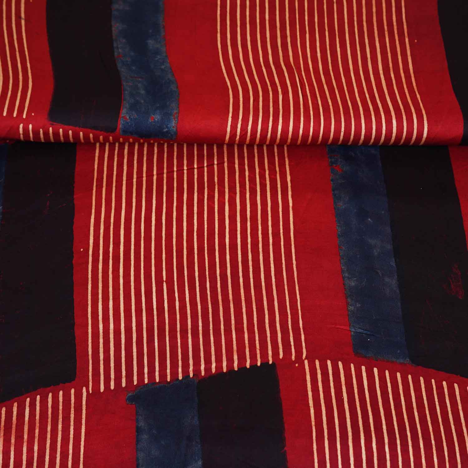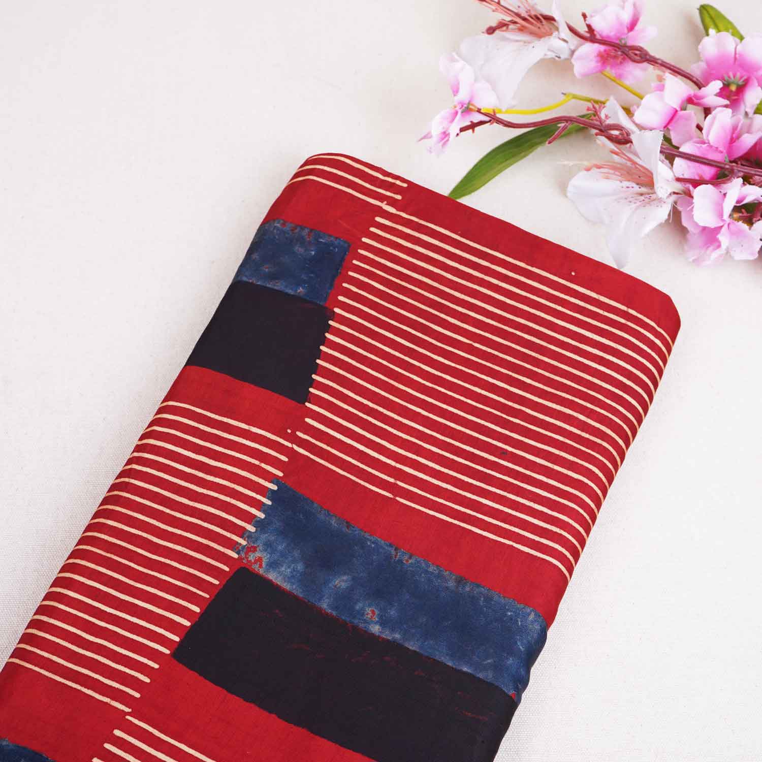 This Red Abstract Print Modal Satin Fabric features expressive brush-like patterns over a strong red base, enhanced by a natural satin glow. The result is a fabric ideal for bold fashion statements, making dresses, kurtas or sets look dynamic, artistic and confident.