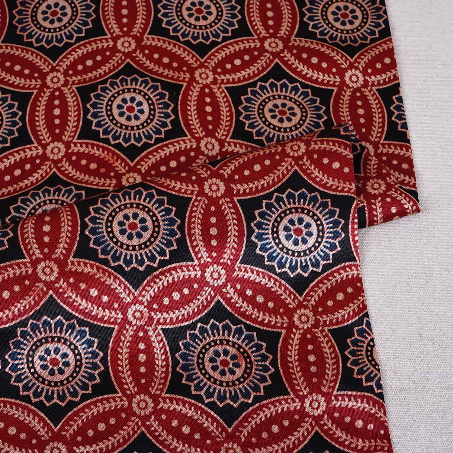 Product Name Red Ajrakh Print Mashru Silk Fabric EEG-28637