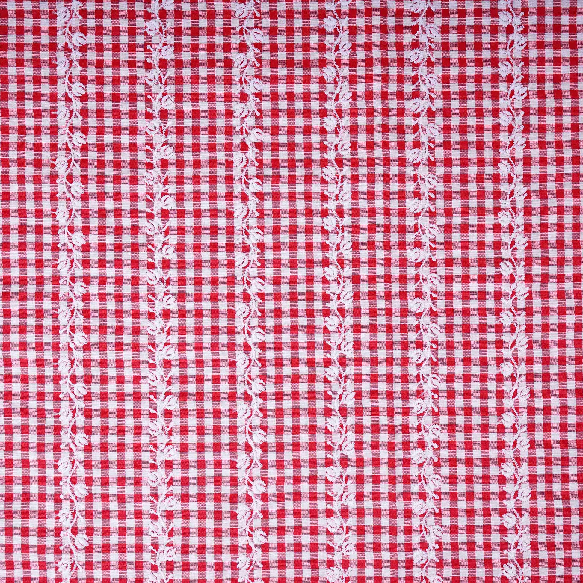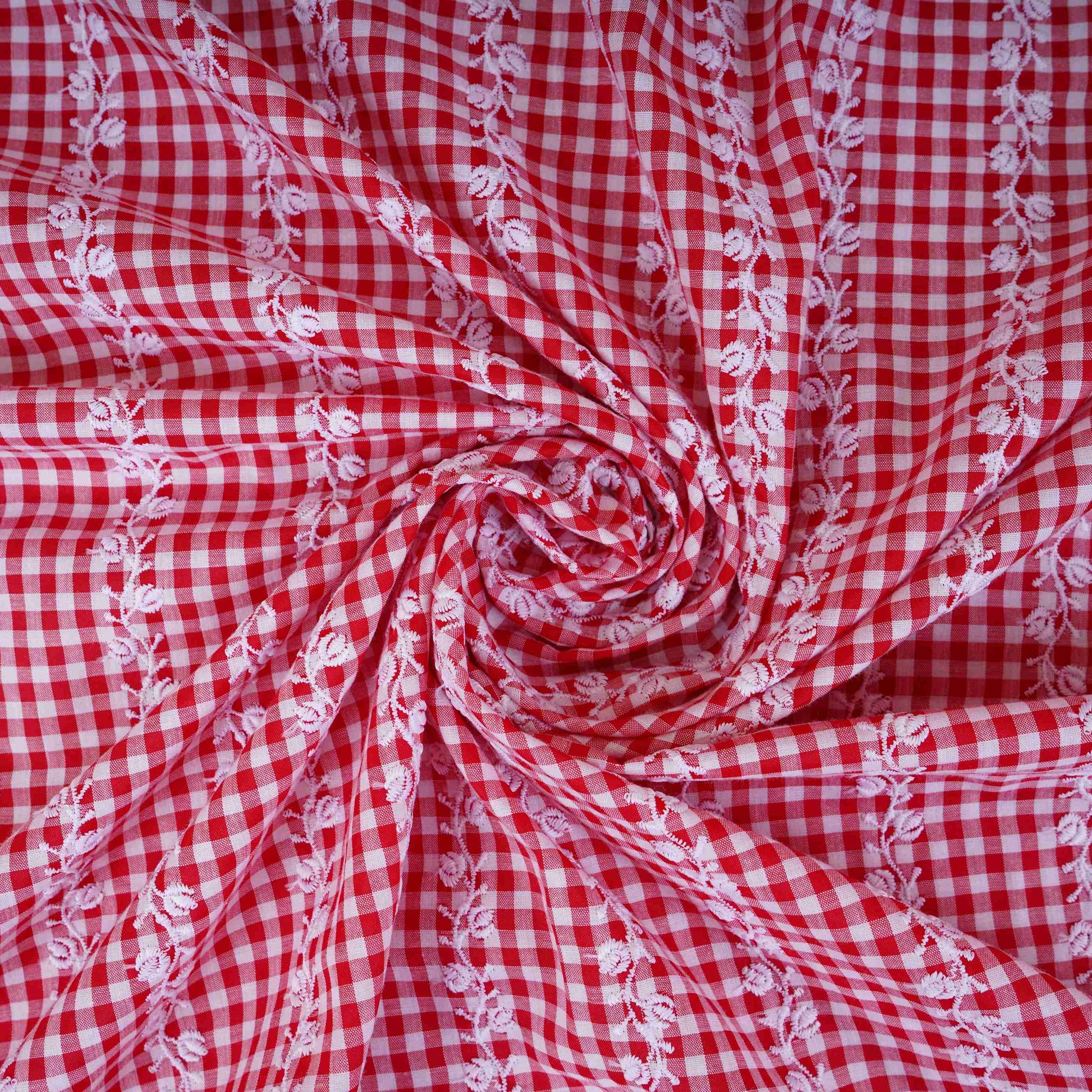 Product Name Red & White Check Floral Stripes Embroidery Cotton Fabric MJF-30617