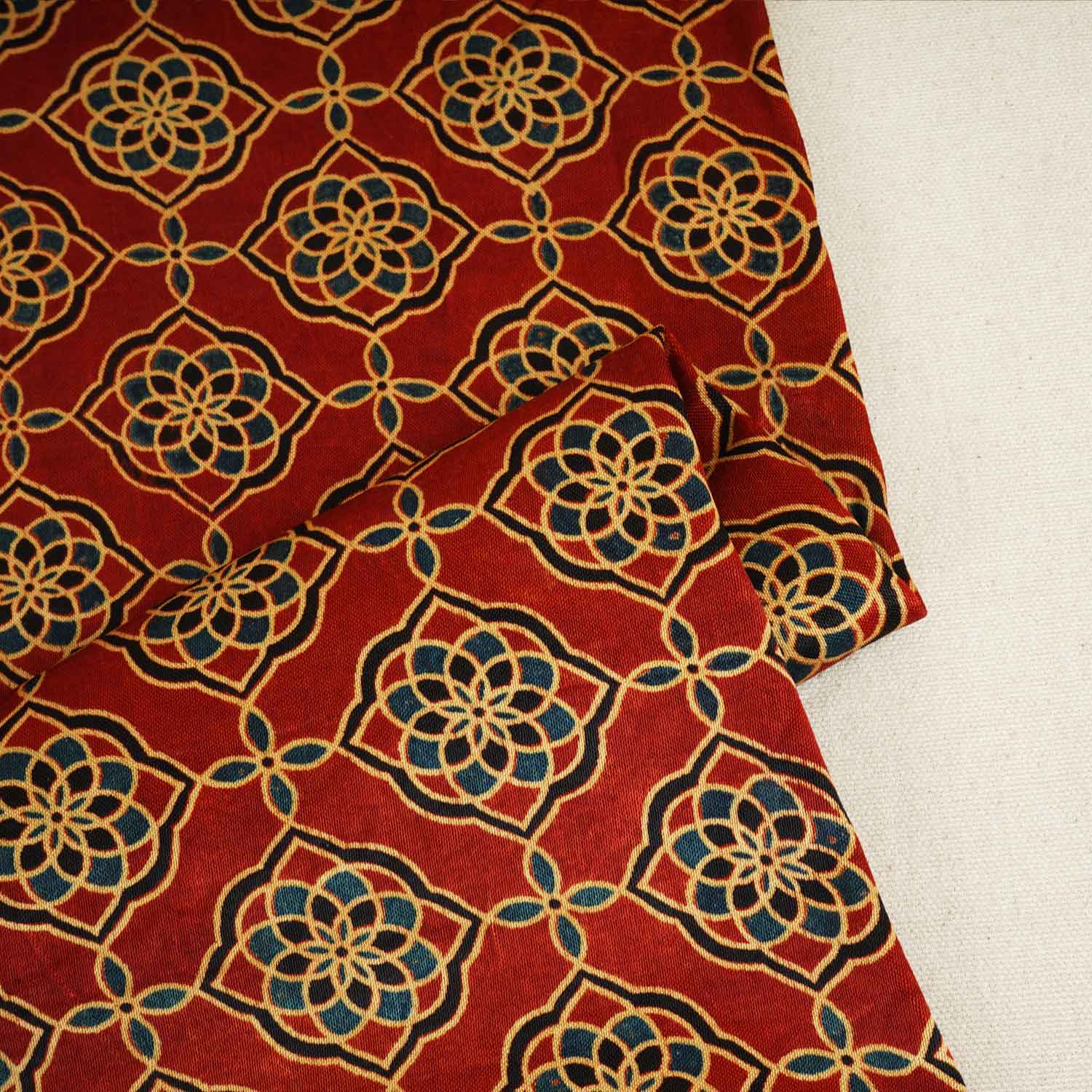 Product Name Red Floral Print Mashru Silk Fabric EEG-28356