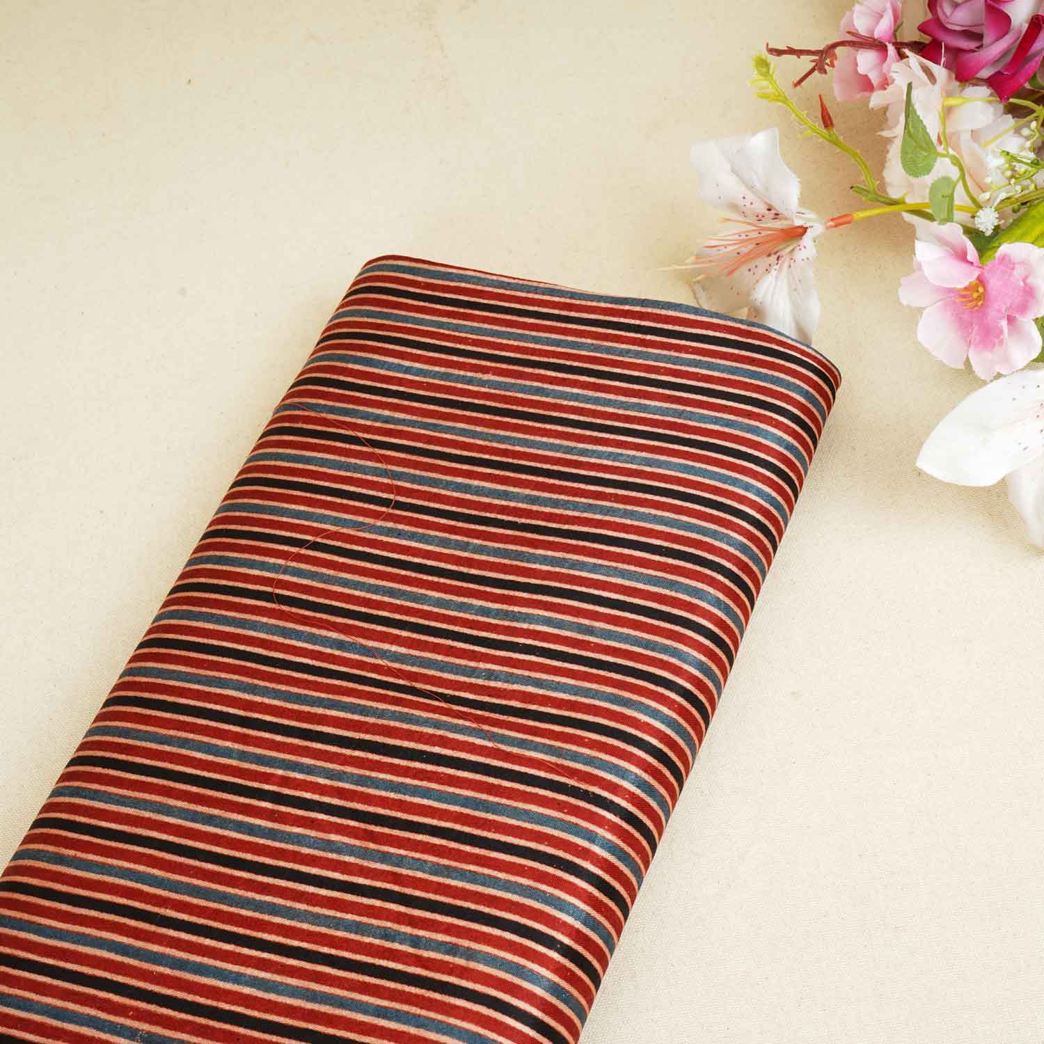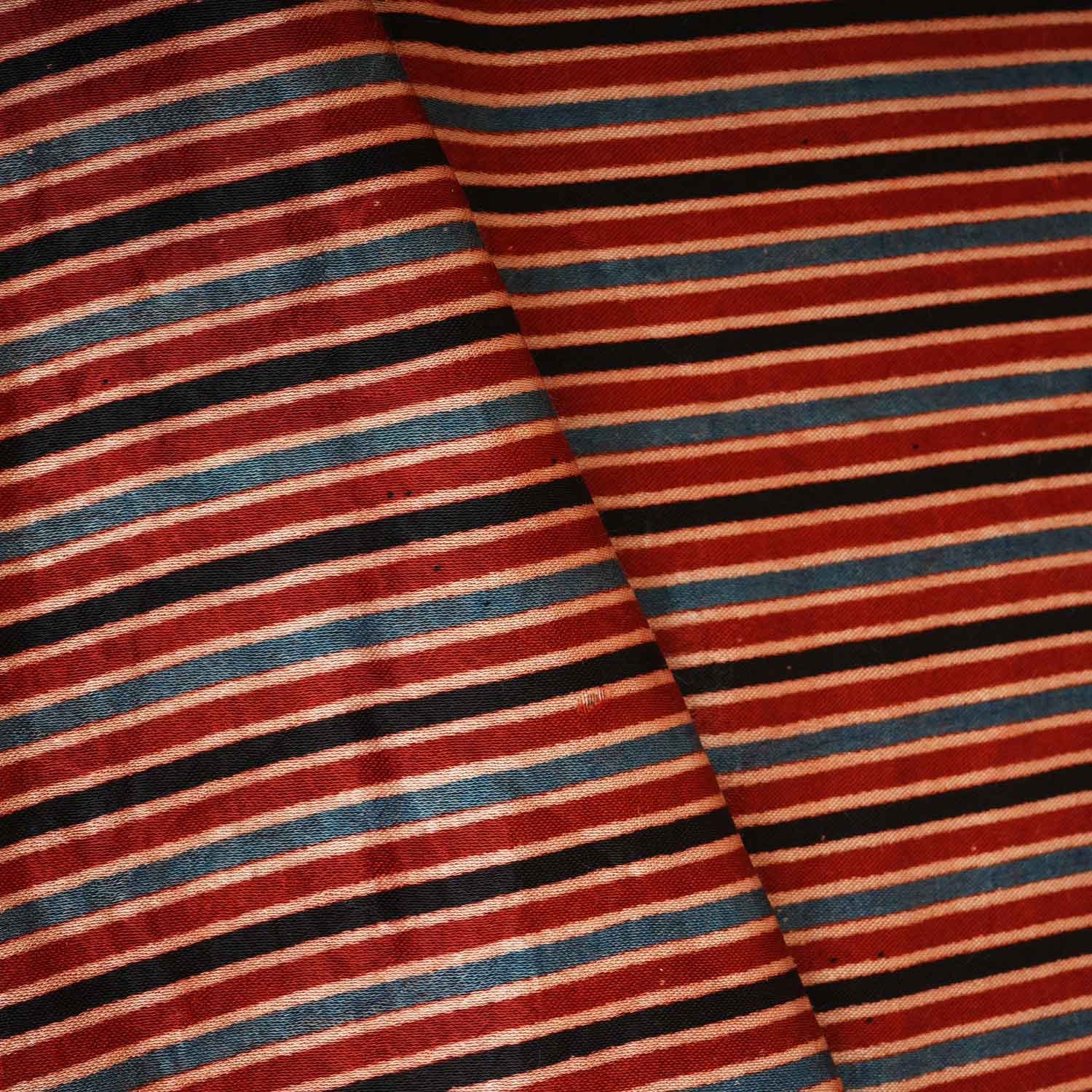 This Red With Multicolour Strips Mashru Silk Fabric adds lively striping to the smooth sheen of mashru silk.