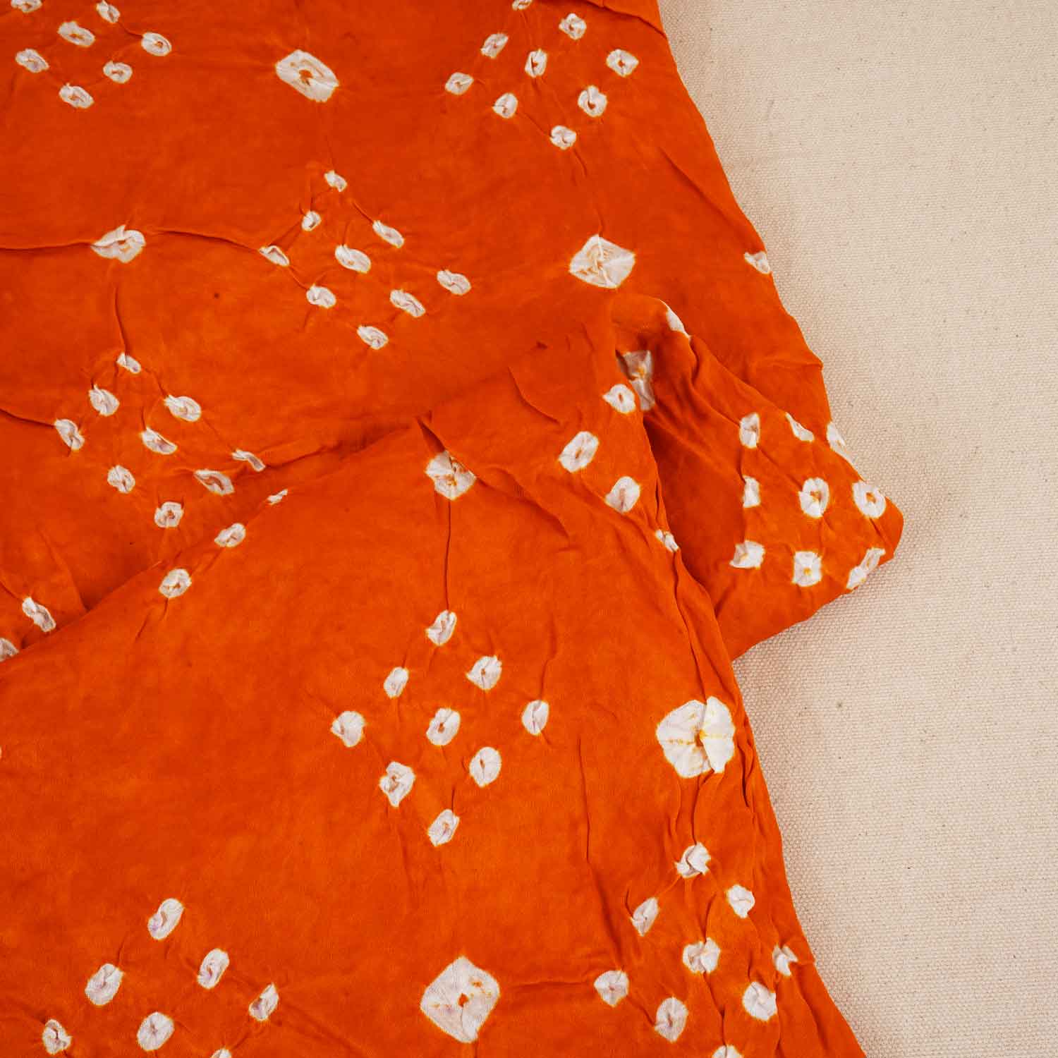 This Rust Orange Bandhani Print Modal Silk Fabric celebrates traditional craft with a fluid drape. Ideal for festive sarees, kurtas, or statement co-ord sets with cultural flair.