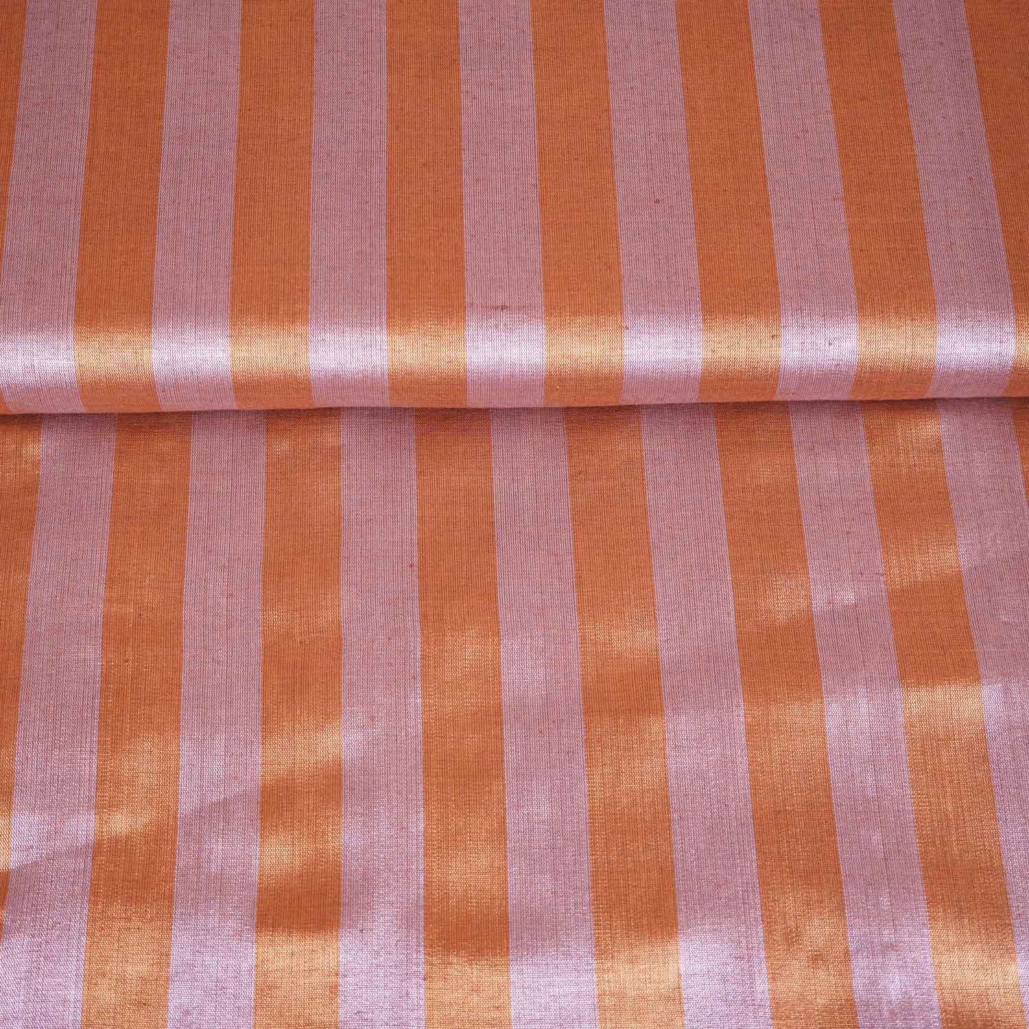 Silver with Golden Strips Chanderi Tissue Fabric CW-28773
