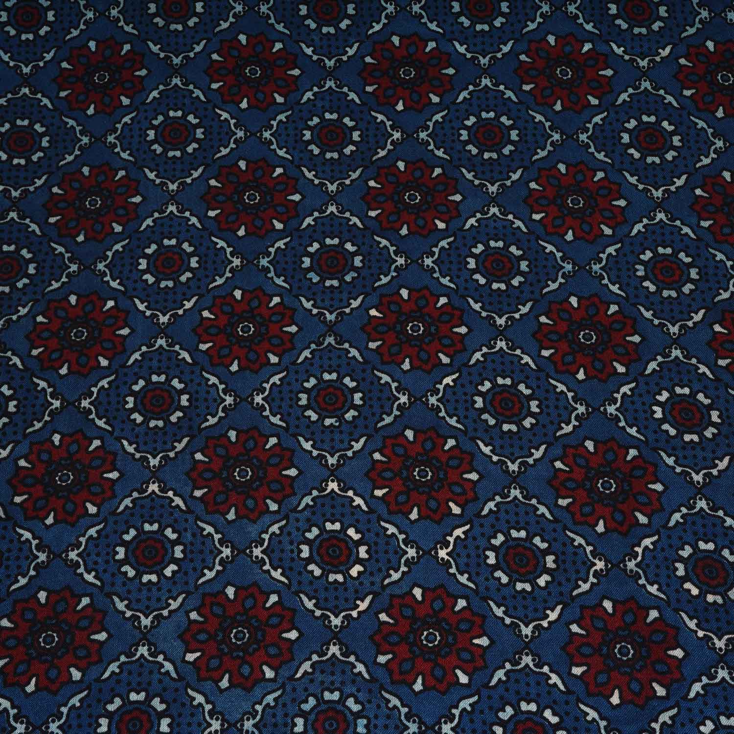Product Name Teal Blue Ajrakh Print Mashru Silk Fabric EEG-28323
