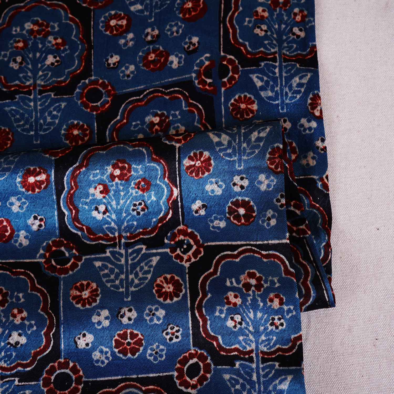 Product Name Teal Blue Ajrakh Print Mashru Silk Fabric EEG-28656