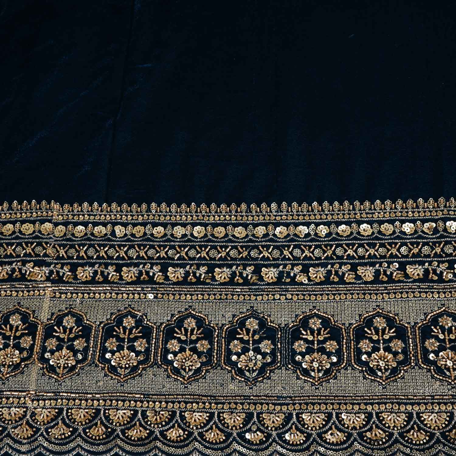 Product Name Teal Blue Border Work Cutdana Micro Velvet 9000 Fabric SC-28295