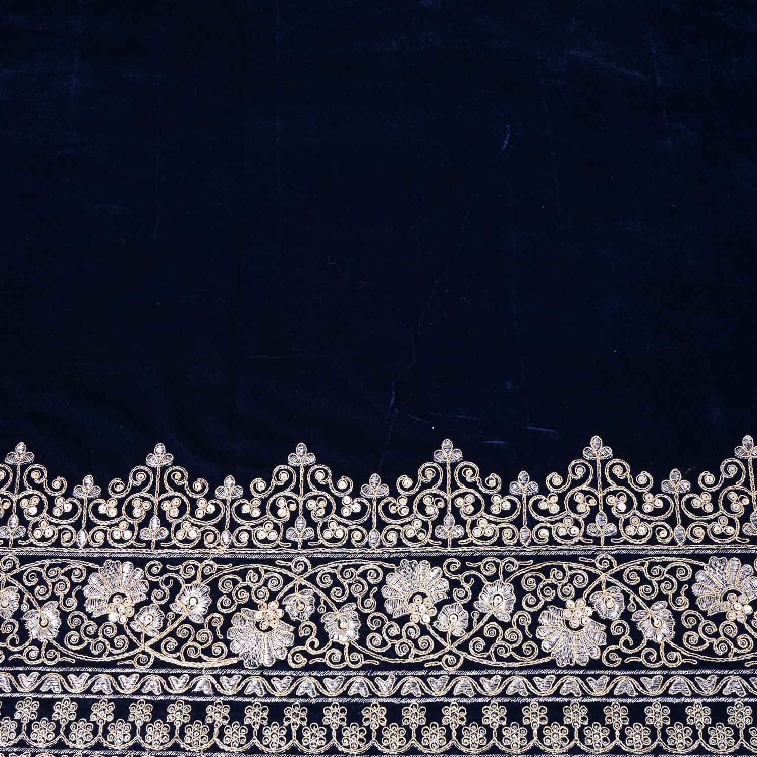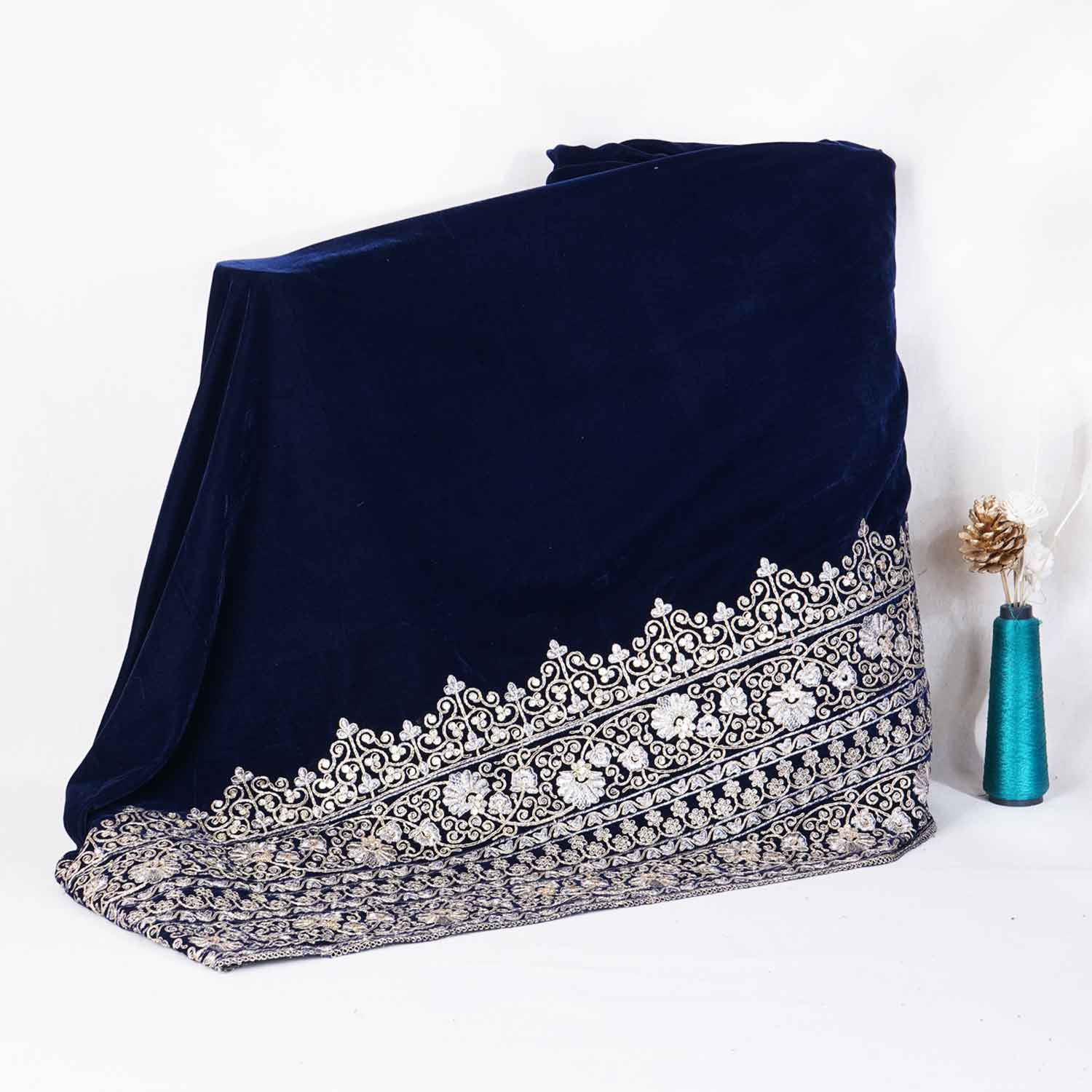Product Name Teal Blue Border Work Zari embroidery Velvet Fabric JD-28604
