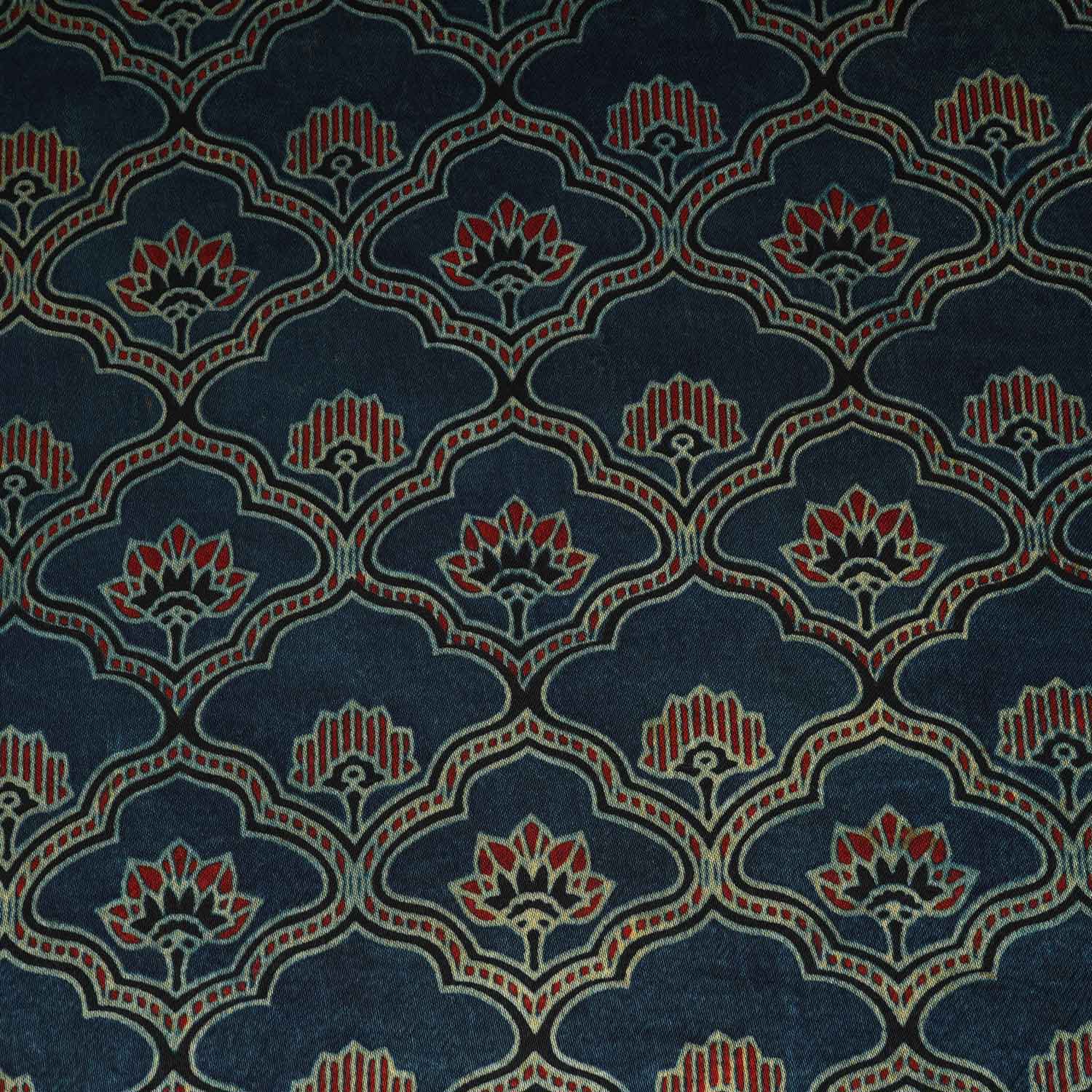 This Teal Blue Floral Print Mashru Silk Fabric blends teal richness with detailed floral artistry.