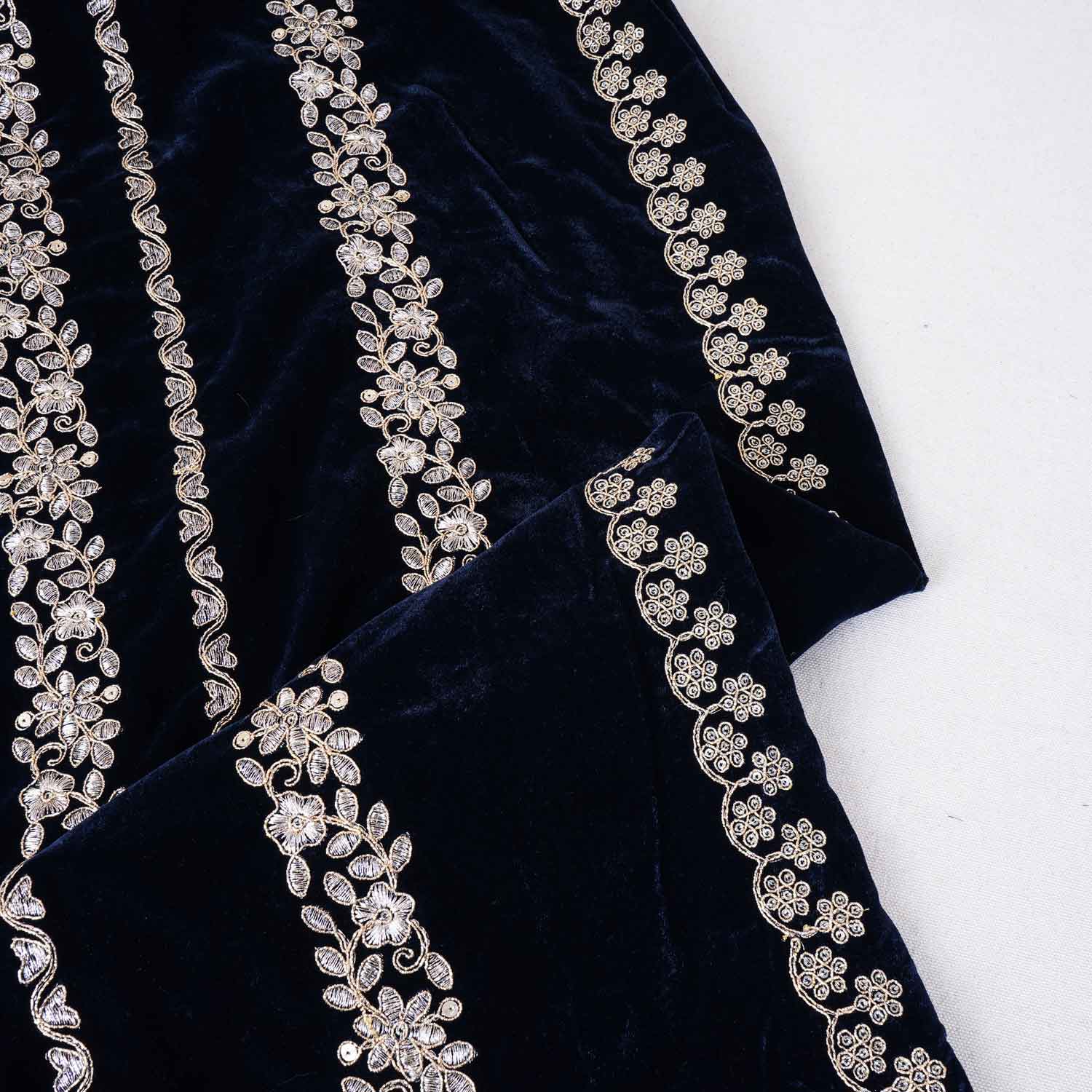 Product Name Teal Blue Zari Sequnis embroidery Velvet Fabric JD-28602