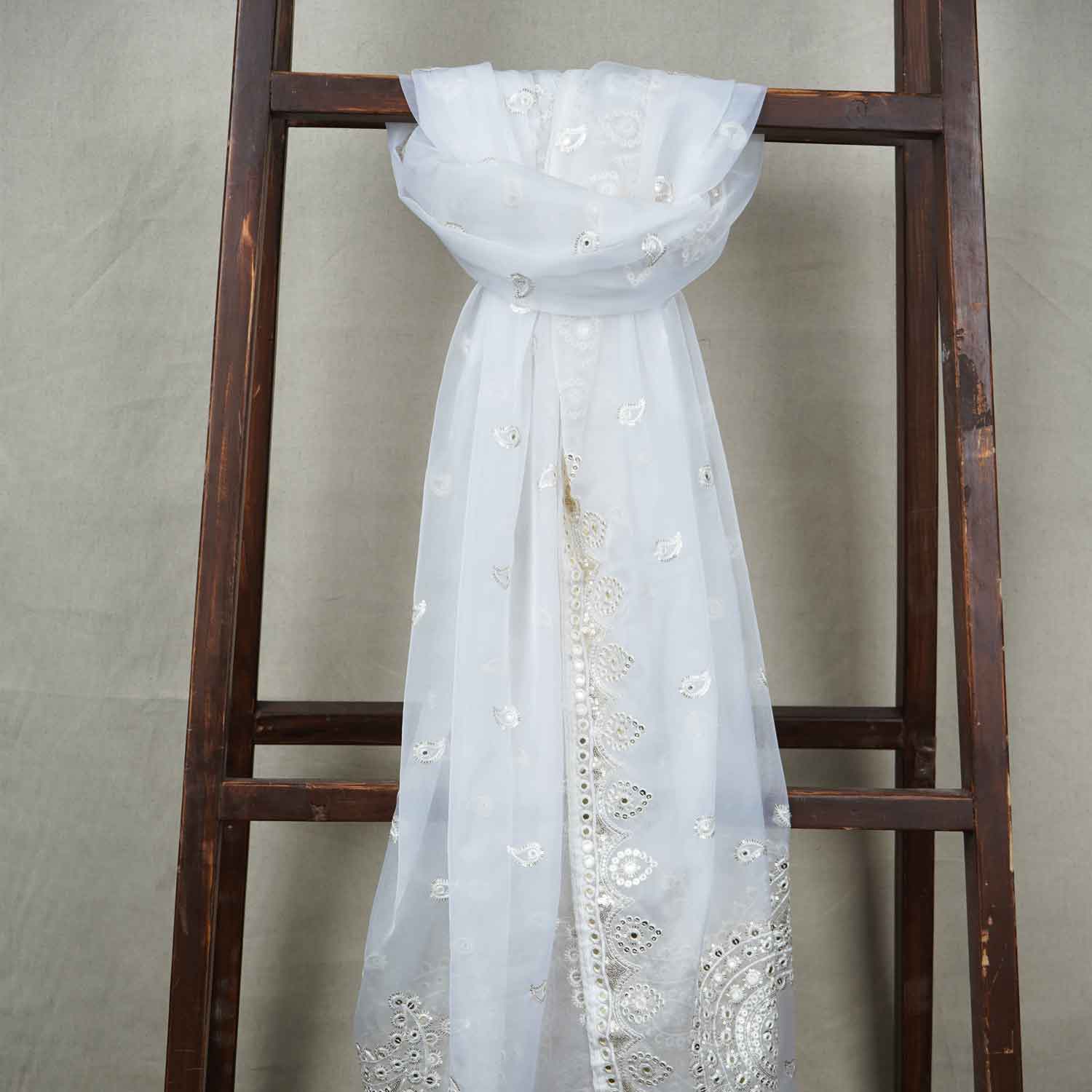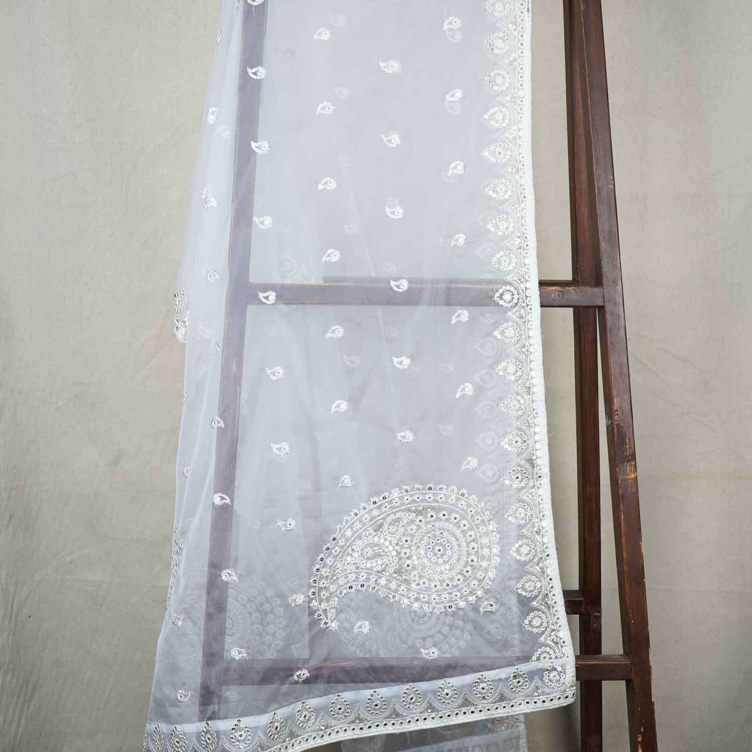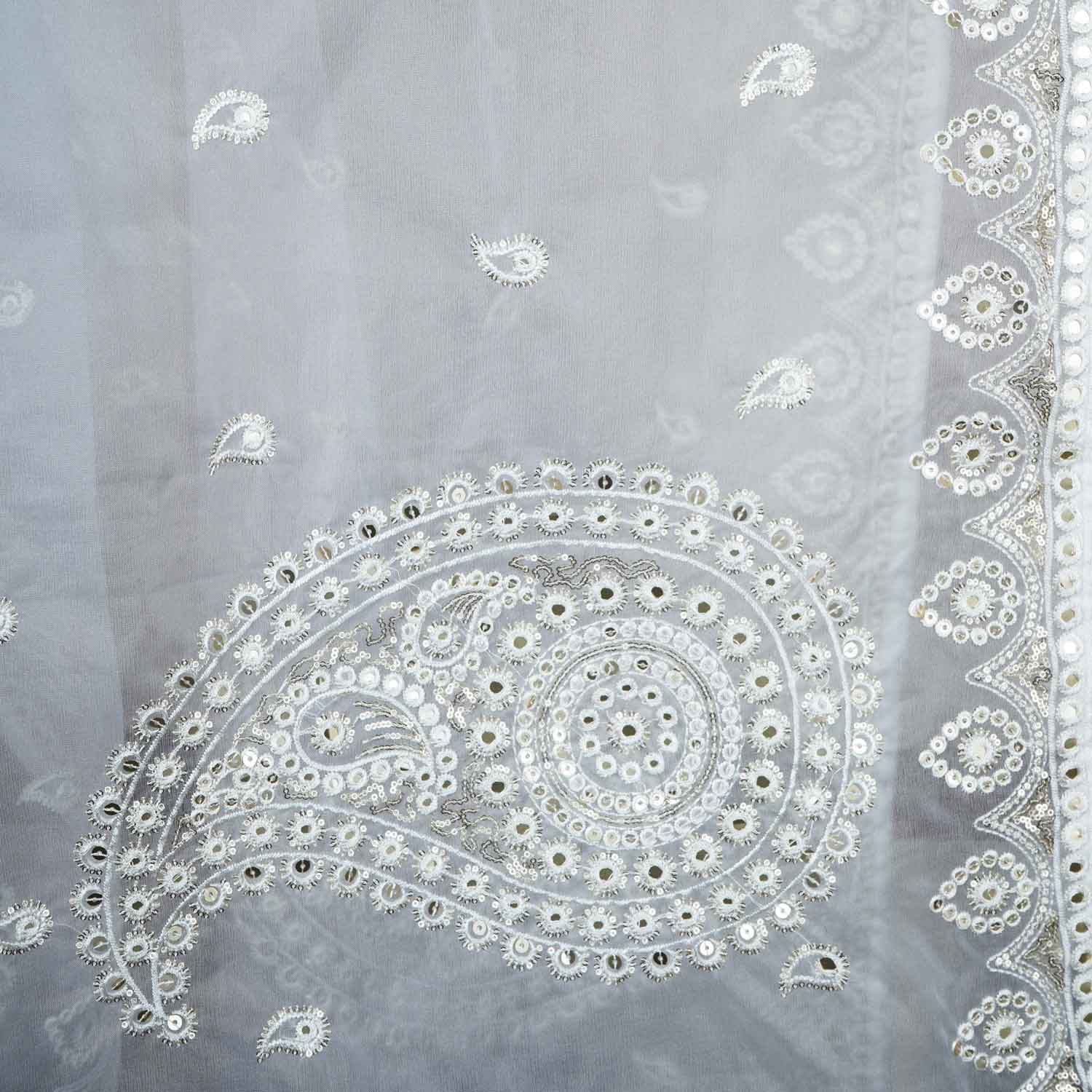 Product Name White Paisley Buti Embroidery Dyeable Organza Dupatta TA-28931