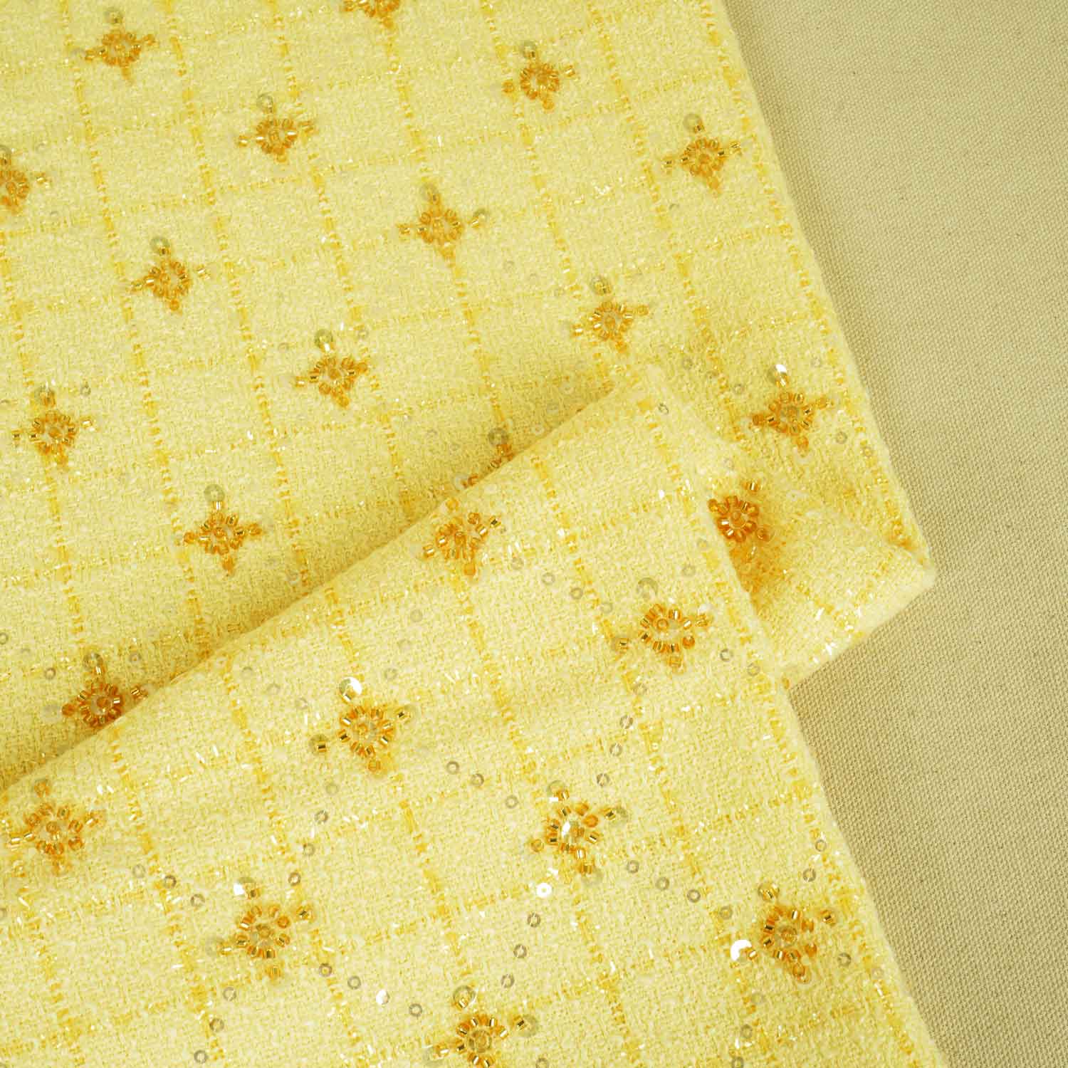 Product Name Yellow Cutdana Tweed Fabric AF-27966