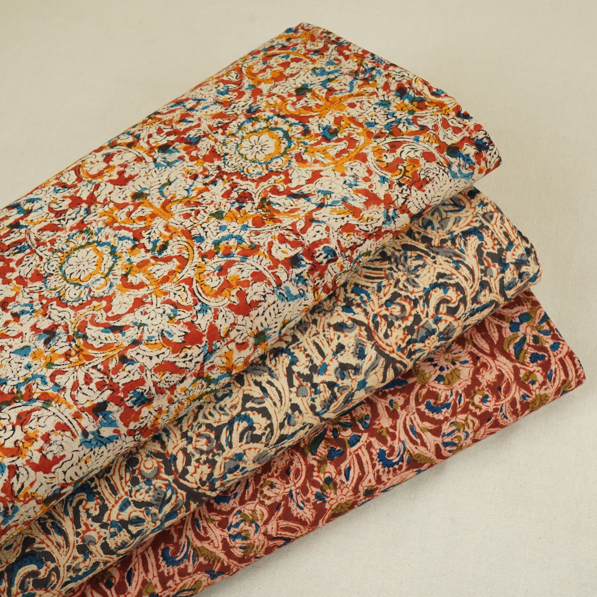 Experience the timeless charm of Red Kalamkari Print Cotton Fabric. Crafted from soft, breathable cotton, it features intricate traditional Kalamkari motifs in vibrant red hues. Perfect for ethnic wear, home décor, or creative stitching projects, this fabric combines elegance, comfort, and artisanal craftsmanship, bringing a touch of heritage to every creation."
